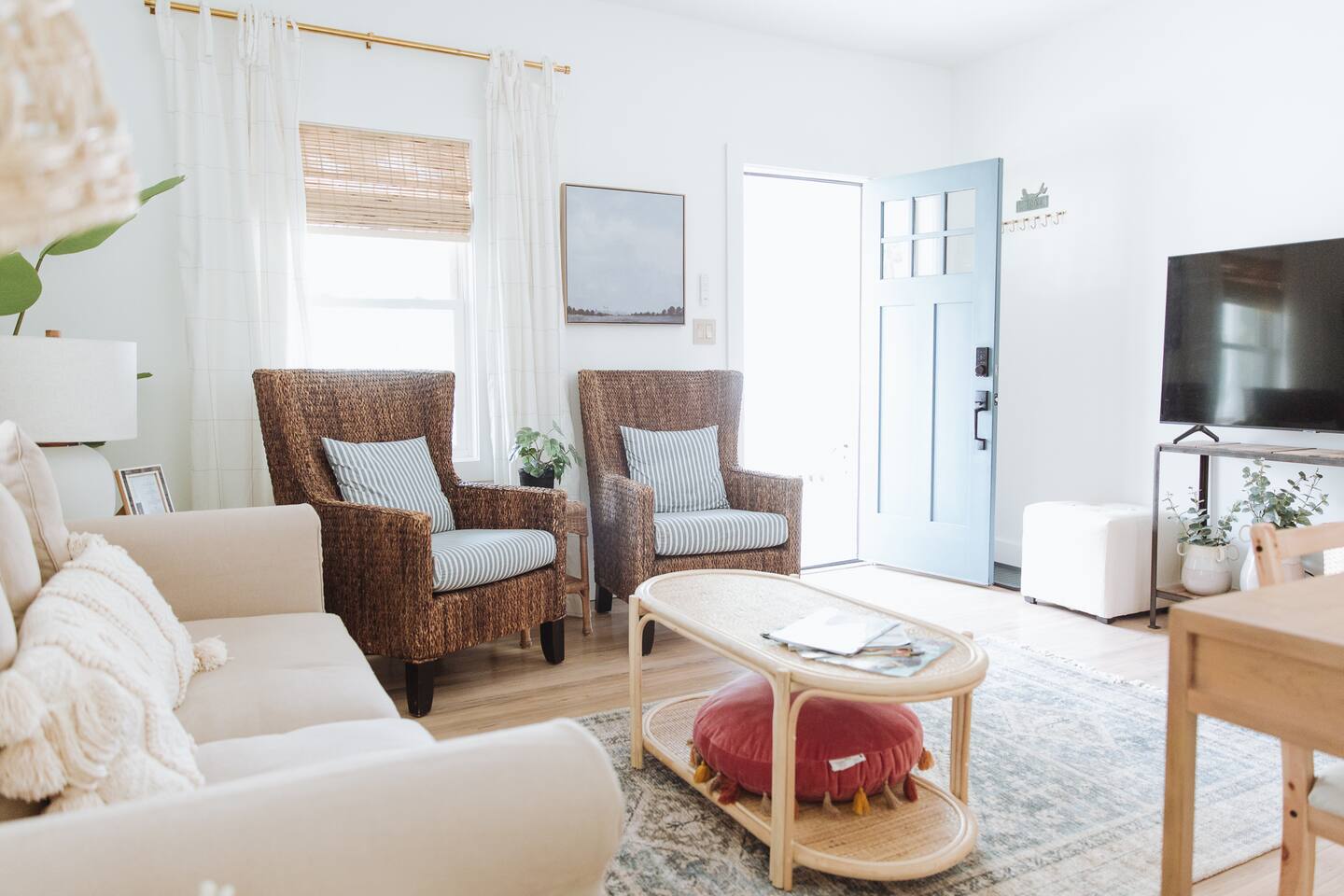 Casa Fresa, Home Features: Charming Duplex Nestled in the Heart of the Historic District. We take pride in making sure your family feels comfortable and relaxed while you're on vacation! • 2 Bedroom, 1.5 Bath - Available for up to 6 Guests! • Renovated modern kitchen & Full Dining room • Bar area with mini-fridge and an ice maker to mix up your favorite beverages! 🍸🍹🍾 • Just 2 Short Blocks from the Beach & Downtown • Front Porch with Swing & Backyard Brick Patio with Grill • Next to the town's Central park: Splash fountain, playground, Cornhole, soccer field, Pickleball & Tennis courts • Free Wi-Fi, Cable, & Smart TVs 🏖 2 blocks to the beach! 🍹2 blocks to downtown dining and entertainment! ⛲️Next to the town park that has a splash fountain, Children’s play area and Saturday night live concerts in the summer! 🚿 Outdoor shower for all those sandy toes coming home from the beach 🍔 Outdoor gas grill ☀️ Beach gear includes chairs, toys and Beach wagon, available in private shed ⛱beach umbrella at the house 🏝beach toys and kids toys 🎒Beach backpack cooler 👶 High chair, travel crib, and umbrella stroller available to guests! 💦 kiddie pool available for guests ☕️ Coffee, creamer, and tea provided for guests 💻 Dedicated Desk in the living room with additional Work space at the dining room table with Wi-Fi for any remote working needs! 📱Cellphone charging station next to all beds! 📺 55 inch smart tv in living room with ability to log in to your personal apps or watch the complimentary local stations and cable stations! 🔊Sound machines in both bedrooms 🖤Blackout curtains on all upstairs windows * Updated Kitchen with new appliances * Updated bathrooms hardwood floors * Inviting front porch with porch swing and chairs * Private fenced in back yard w/ private brick patio * Queen size bed in master BR * Children books and Table Games * First aid kit & sewing kit * Complementary coffee, tea, oil, salt & pepper * Food containers, cutting boards * Measuring cups & spoons * Children dinnerware: plates, cups & silverware * Wine glasses * Baking sheet * Blender * Hair dryer * Cleaning products * Washer & dryer * Bed & bath linens provided * Games and toys, board games, outdoor games, pickleball, Cornhole bags * Extra pillows, blankets, hangers * Iron & iron board * Fire extinguisher * Free street parking Who could ask for more? With all of this, Casa Fresa makes a perfect vacation destination. ***Please click the "Save" ❤️ button in the top right of our listing so you can easily find the house again for future trips or to share with your friends! *** This is an entire duplex unit with individual front porch and privately fenced in backyard. During construction sound proofing was installed to the shared wall between both duplex units. Sound proofing is excellent but there will be an occasional thud heard. For this reason, both bedrooms have sound machines to use as desired! We have stocked the home with many items including start-up supplies. However, you will likely need to supplement with your own during your stay. We appreciate that our guests take good care of the home we have set up, and ask that you use only what you need during your stay.